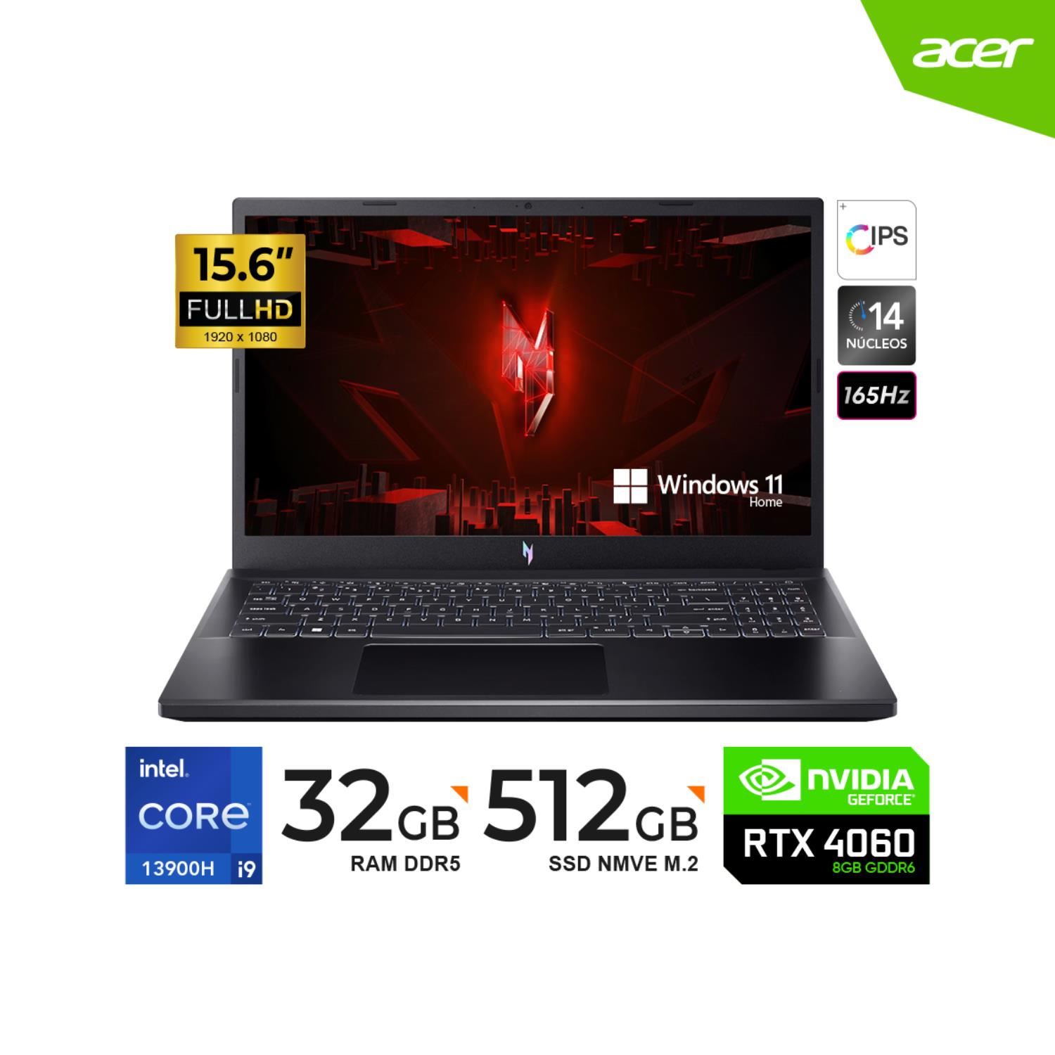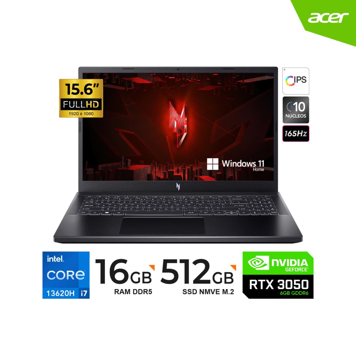 LAPTOP ACER NITRO 16 AN16-51-54NQ / 16" WUXGA 165Hz / Core i5 13500H, 4.70GHz, 12 Núcleos / 8GB RAM DDR5 / 512GB SSD / RTX4050 (6GB - GDDR6) / FREEDOS